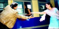 At the end observe the Indian getup. How well it looked on the Train. Running fast and slow at the same time. Fast in long range shots and slow in close range shots. Exquisite. It slowed itself down at the appropriate moment to let Kajol in. I can watch the scene again and again. In fact I would give the award for the best trio to “Shah-Kajol-Train”.?