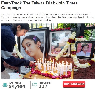As if “Times of India” group was not content of unleashing that shouting headache on us, now they want to sway public opinion to achieve social injustice. Their latest gimmick is “Campaign to Fast-Track The Talwar Trial”. They are asking people to Join Times Campaign.